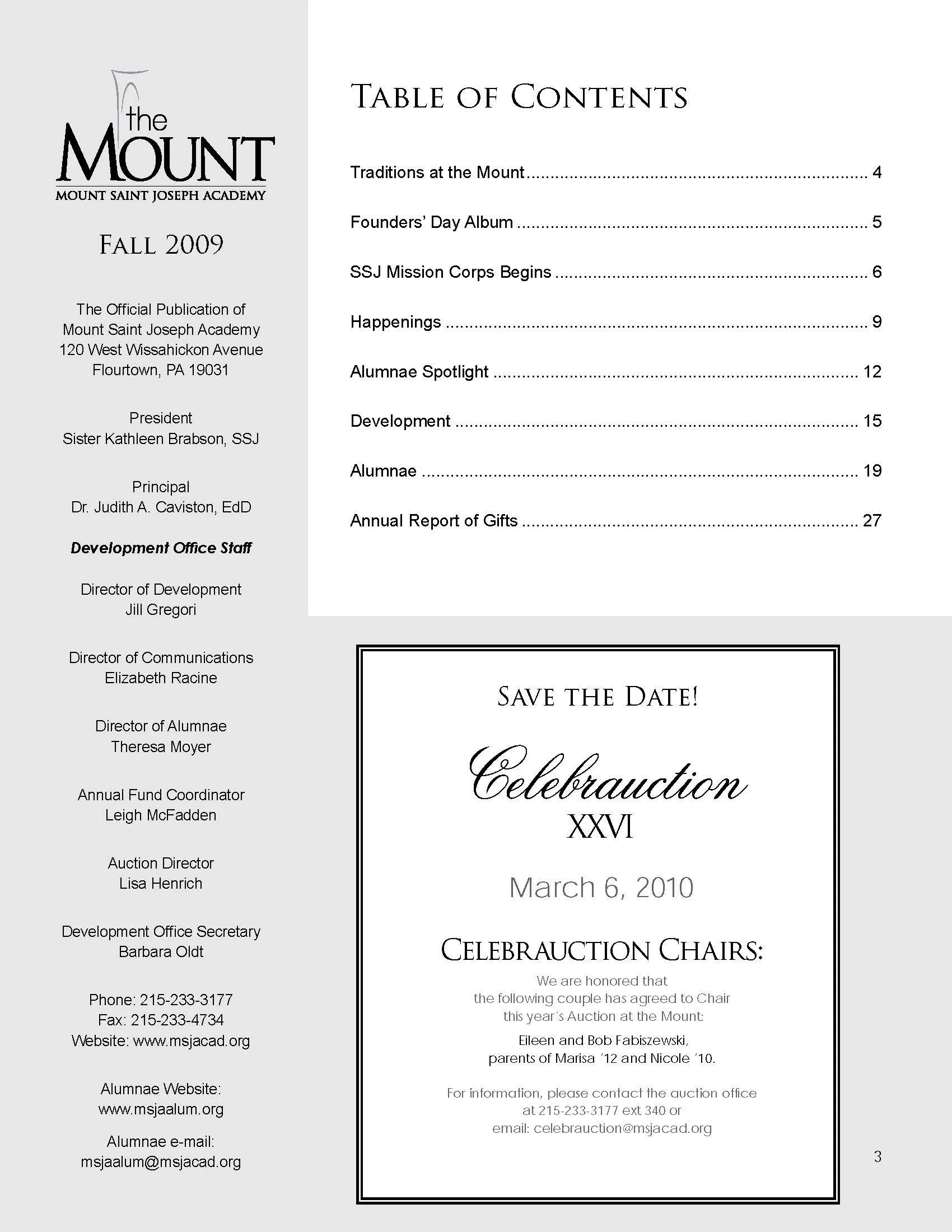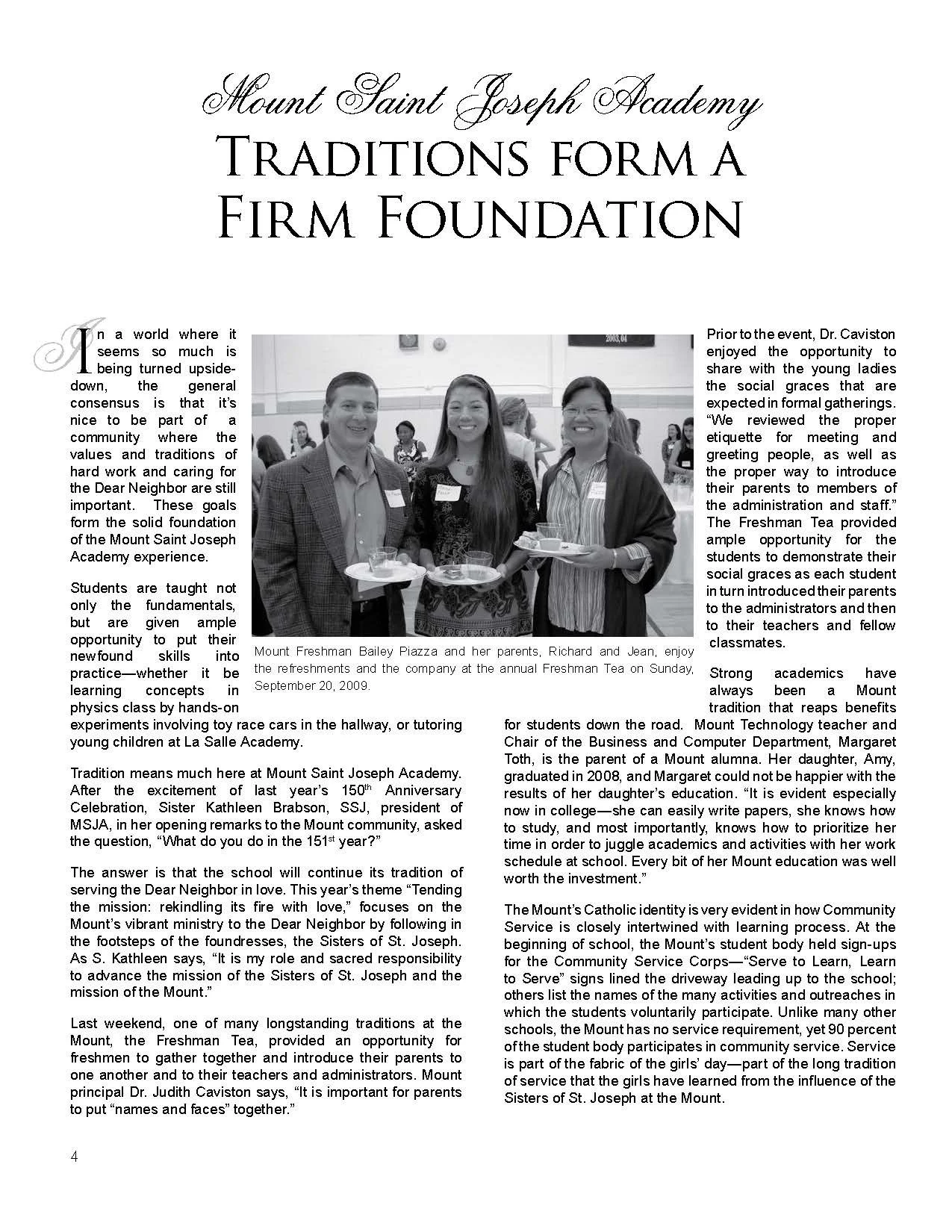 Mount Saint Joseph Academy | Magazine—Fall 2009 Graphic Design Feb 4 Written By Elizabeth Racine GRAPHIC DESIGN | COPYWRITING, COPYEDITING, PHOTOGRAPHY, LAYOUT & DESIGNBelow is a sample of the first several pages of the magazine. Click here to view the entire publication. View fullsize View fullsize View fullsize View fullsize View fullsize View fullsize View fullsize View fullsize View fullsize View fullsize Elizabeth Racine